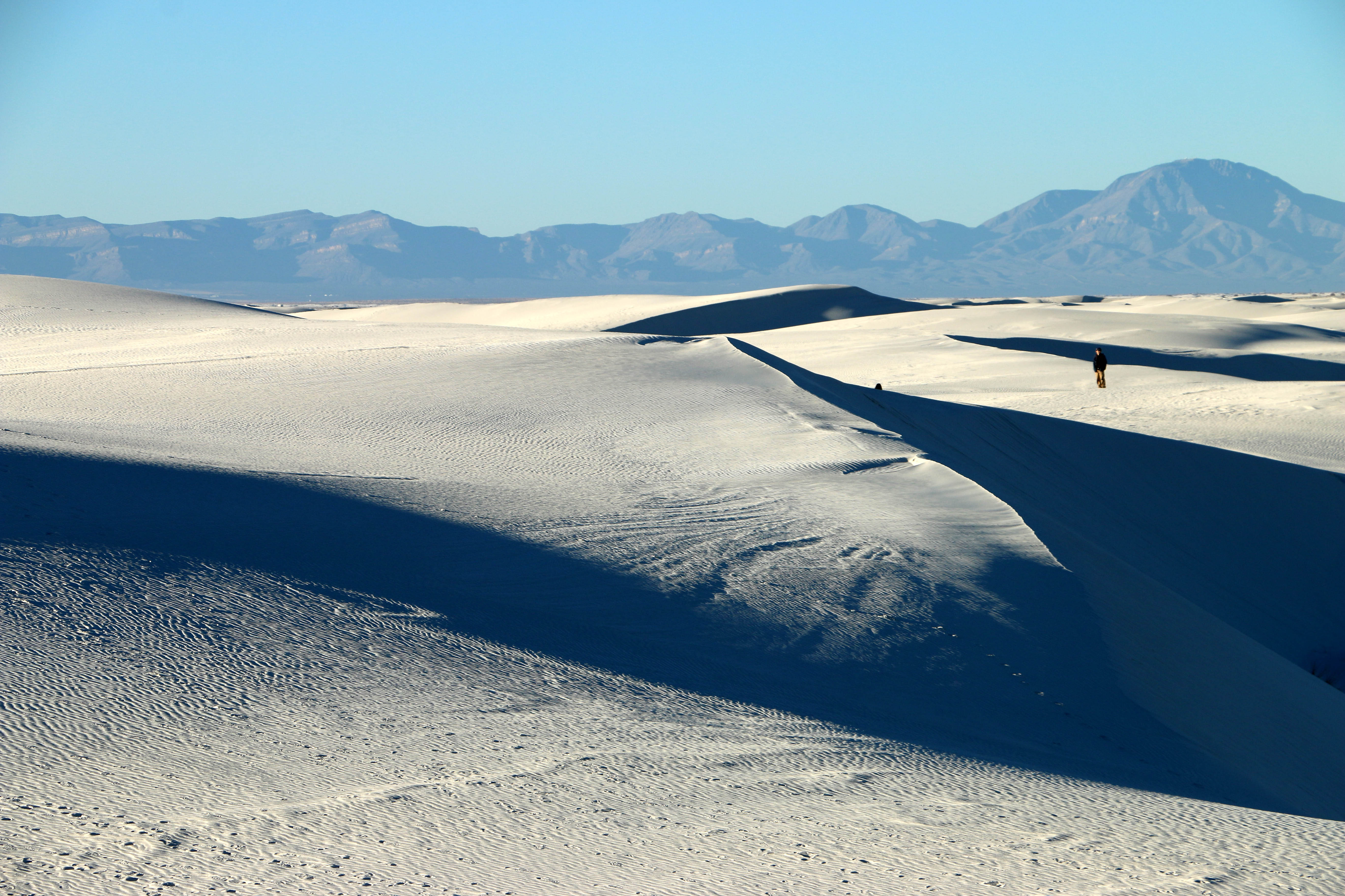 For obvious reasons, WSNM is on the destination bucket list of many amateur and professional photographers. It sure was on mine. The nearest major airport is in El Paso, Texas, about 85 miles south. There is no public transportation to or through the park. Everywhere one looks there is spectacular scenery. Light shifts and reflects and bounces around the sands. It is captivating and enchanting. In my photographs, what you see is white sand; not a spec of snow.