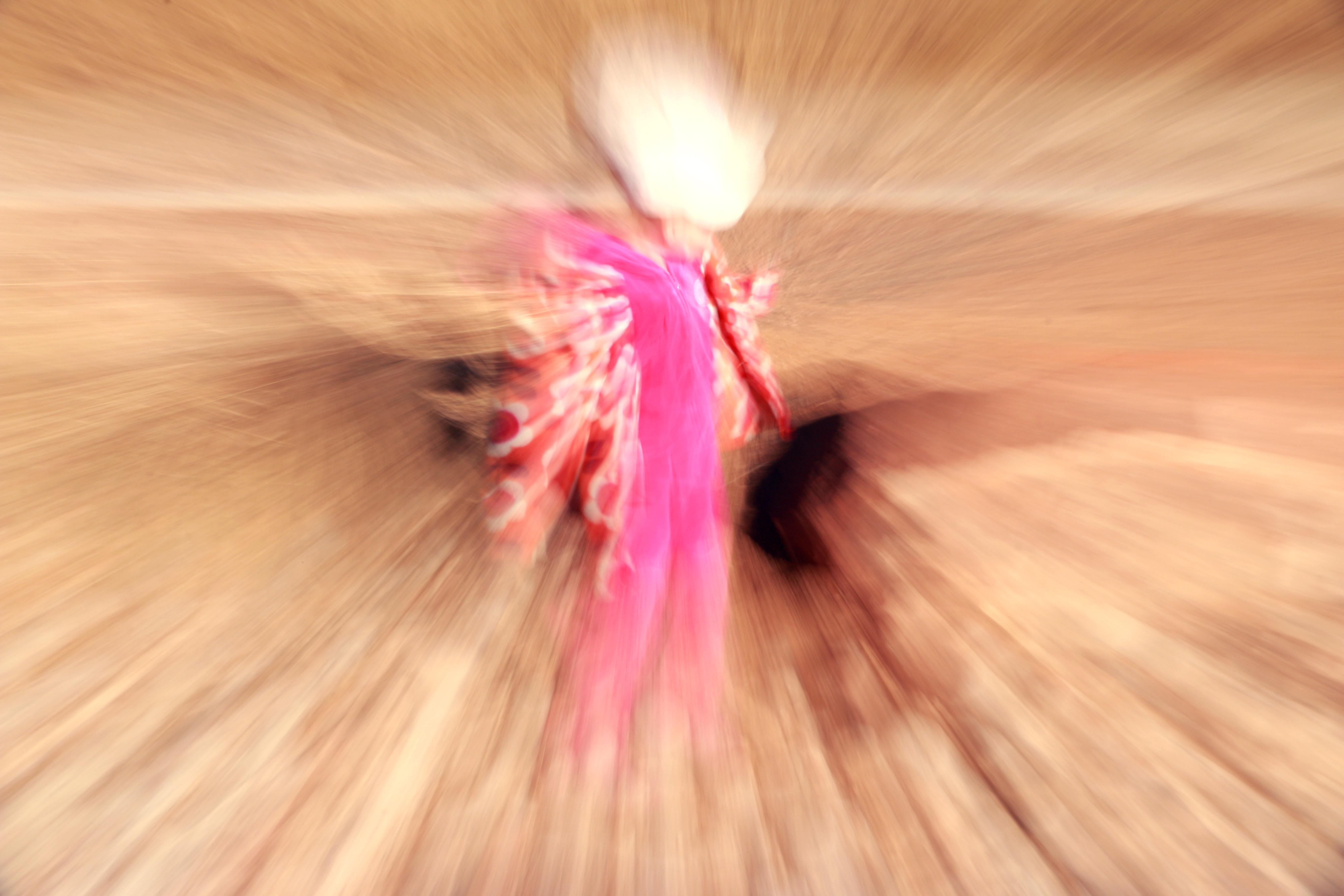This does produce an interesting effect. Try it: while snapping the shutter, either zoom in or out on your subject. It is easier with a still subject; one would be able to use the tripod. However, surprising results can be achieved if the subject is moving. They key is to let in as little light as possible (use as low an ISO and Fstop as possible) combined with as slow a shutter speed you can tolerate to avoid too much image wobble. Placing the subject in the center produced my most pleasing outcome. Focus on something and see what fun results you produce!