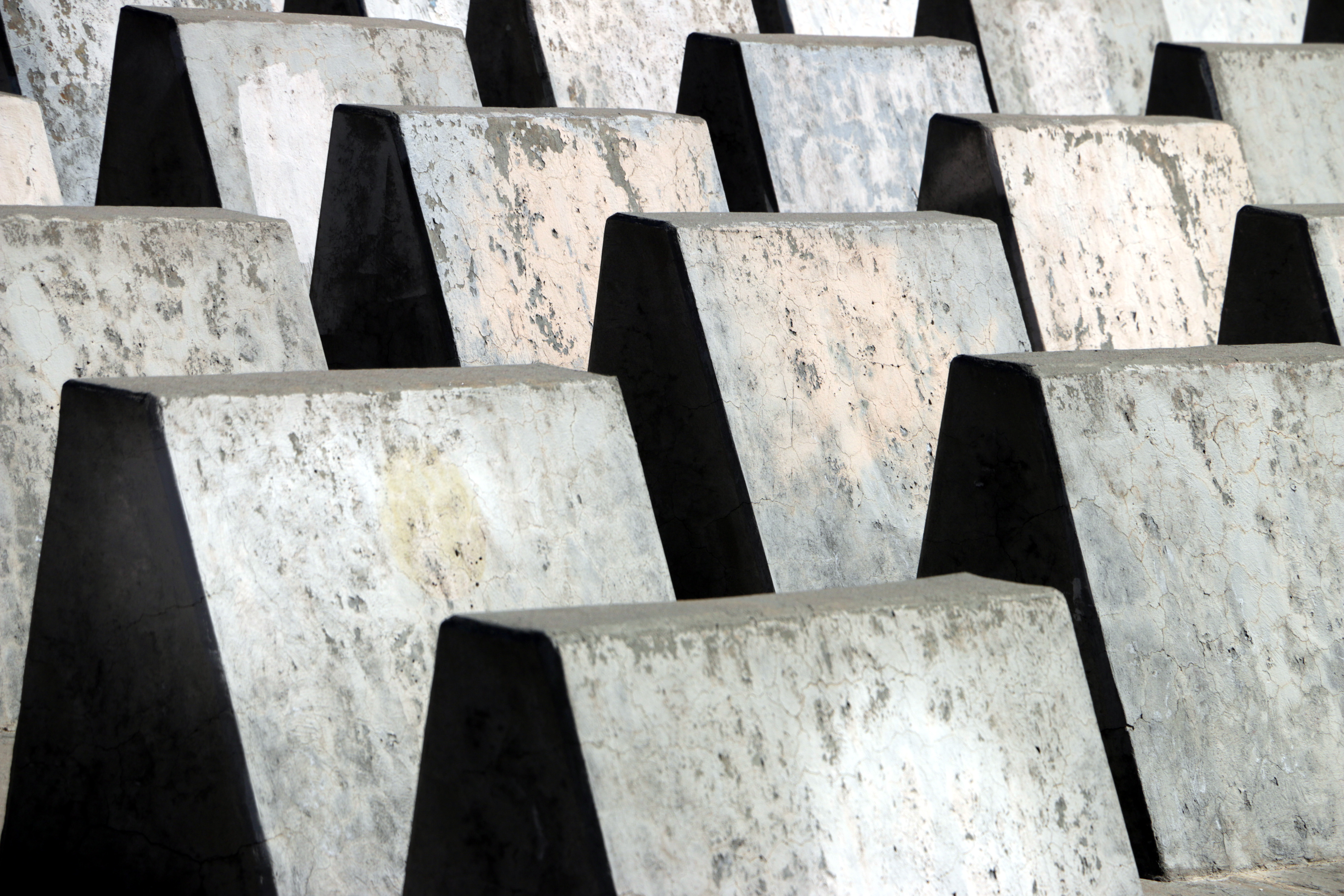 As a location. it offers several dozen large sculptural concrete blocks placed in a grid, along a steeply sloped, West facing hill. It receives the full East-West arc of the sun, with extreme hard light cradling it with shadows. I really enjoy viewing it, and would revisit the spot for a portrait session at another time. The grass and trees in front of it would probably look better, if included in photos, once they had greened up from some monsoon rain.