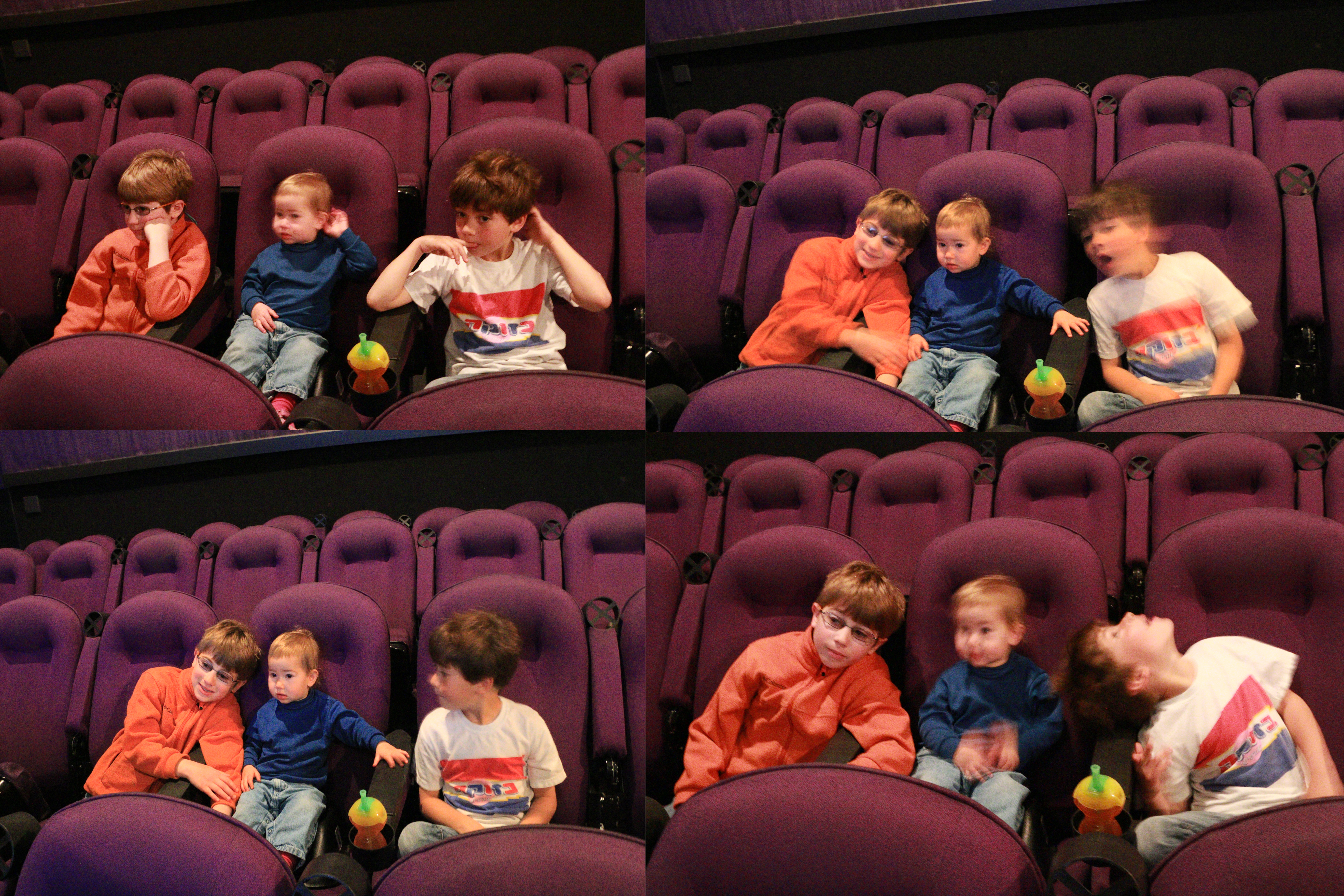 The one nugget that was really driven home, as I attempted to snap my children watching moving trailers in a theatre, is that candid group shots present a challenge in low light. You are best to concentrate on one subject, and allow other figures to blur or move.