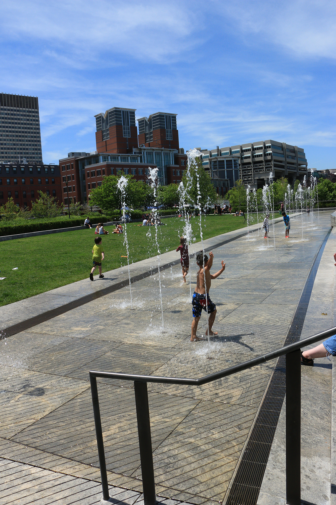 How fortunate are the residents, daily workers and visitors to Boston who now may wander, bike, stroll or pass time relaxing on the grounds. The Rose Kennedy Greenway Conservancy is now maintaining the parks. They seemed to be highly utilized by people of all ages and kept in pristine condition.