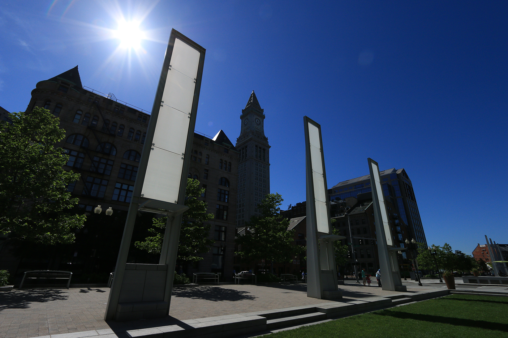 Boston: GREENWAY North End District | 1/1600 sec.; F/10; ISO-320; 10mm These tall panels are lit at night with changing colors.