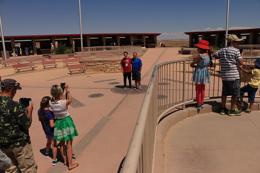 First, you walk into a quadrangle where native vendors are selling Christmas ornaments and Navajo tourist curios. If you already have enough swag, the next thing to do is qeue up and wait patiently for 10-15 minutes to reach the granite and brass marker.