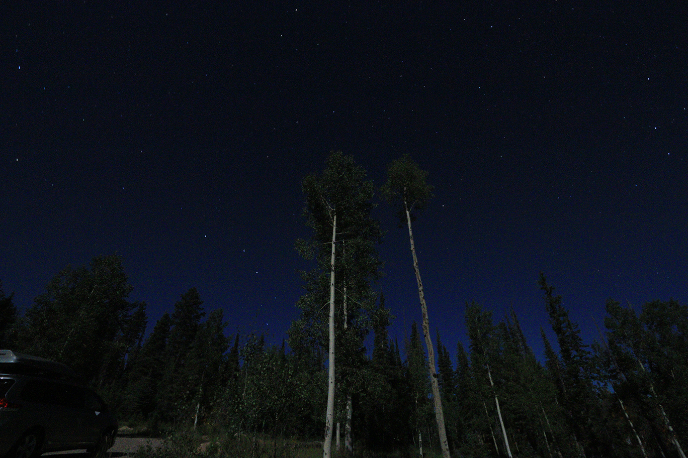 I used my tripod to get an exposure of the night sky after everyone was settled into the tent for sleep. It was a clear evening, and the night just prior to the August “supermoon.”