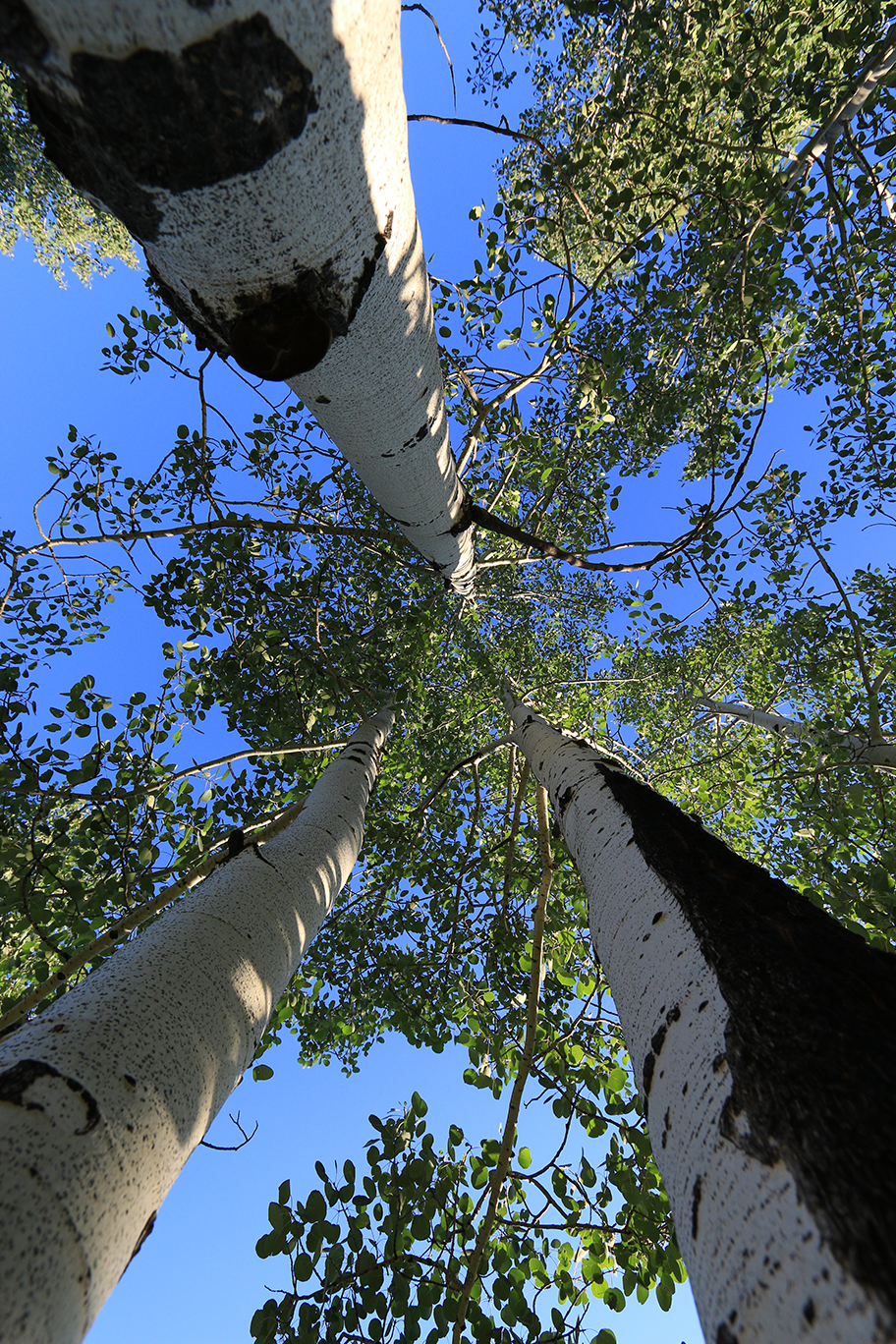 Quaking aspen trees have white bark, like birch trees in New England. With ample sunlight and moisture, they grow from the root structures underground into fully exposed open spaces. They indicate a sign of forest recovery when you see them in an area that experienced wildfires. Below are some shots I took while meandering in the meadow near our tent.