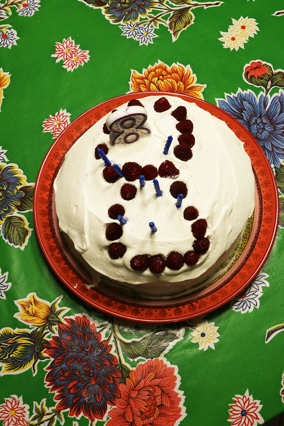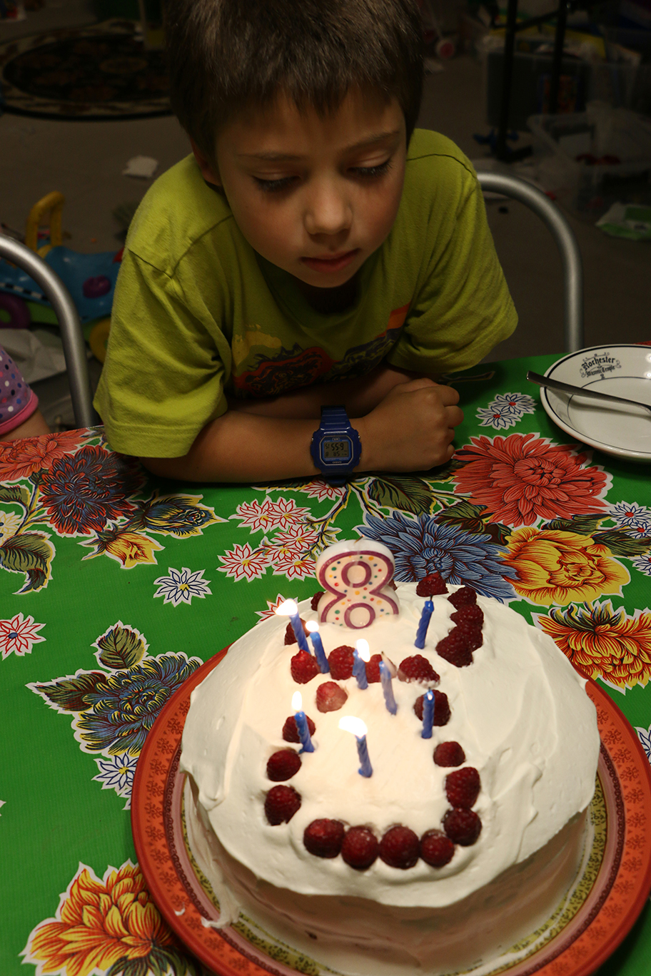 I was at work on baking, filling and frosting a birthday cake for my now turned 8-year-old. It occurred to me to photograph it a few ways.