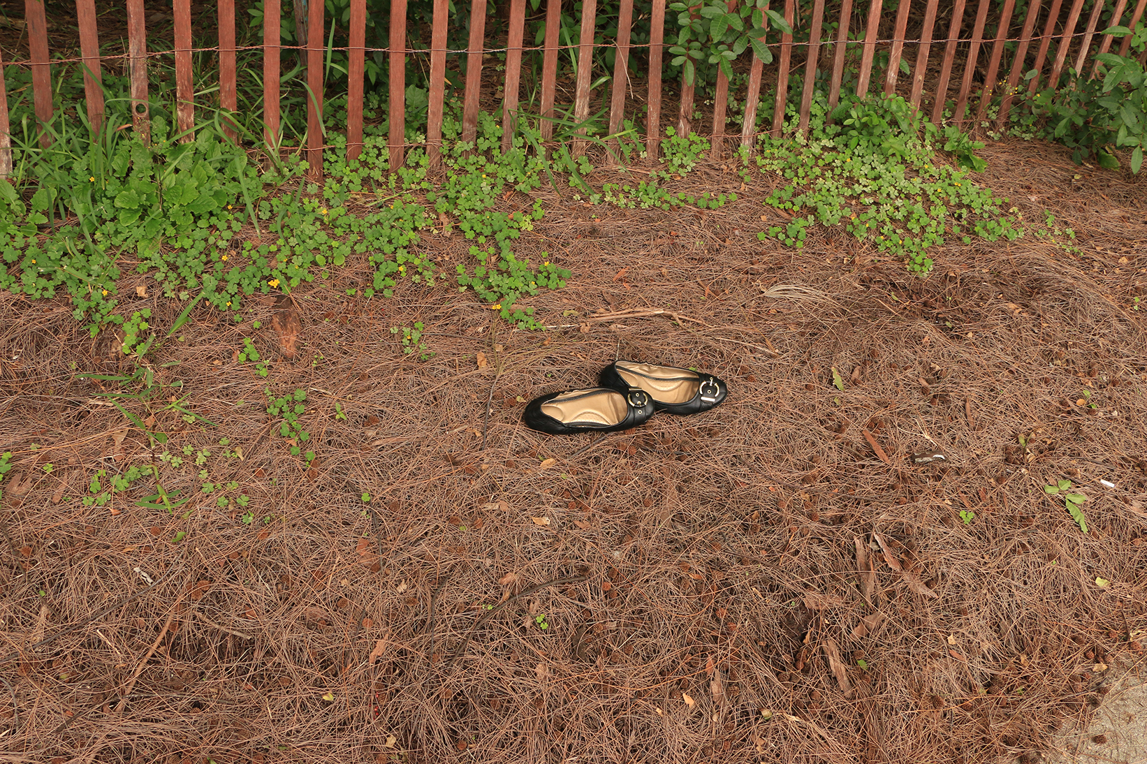 This pair of shoes doesn’t appear to be thrown, but rather placed deliberately. It’s hard to imagine how someone could take off her shoes and forget about being barefoot. When I saw this pair of ballet flats along a park path, all sorts of stories flew by in my mind. None had a resolution. Other than my snapping the photo and sharing it with you, that’s how this story ends.