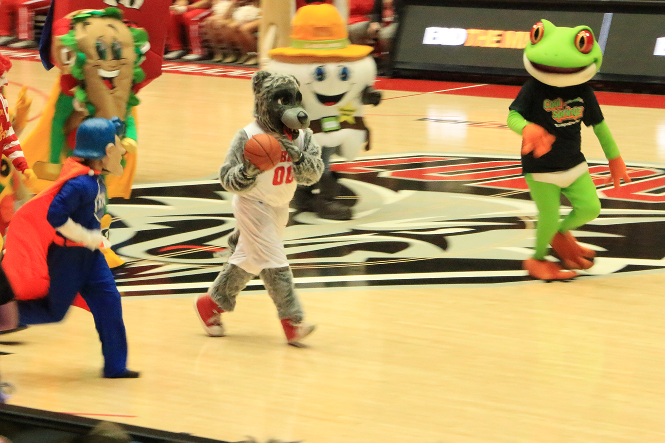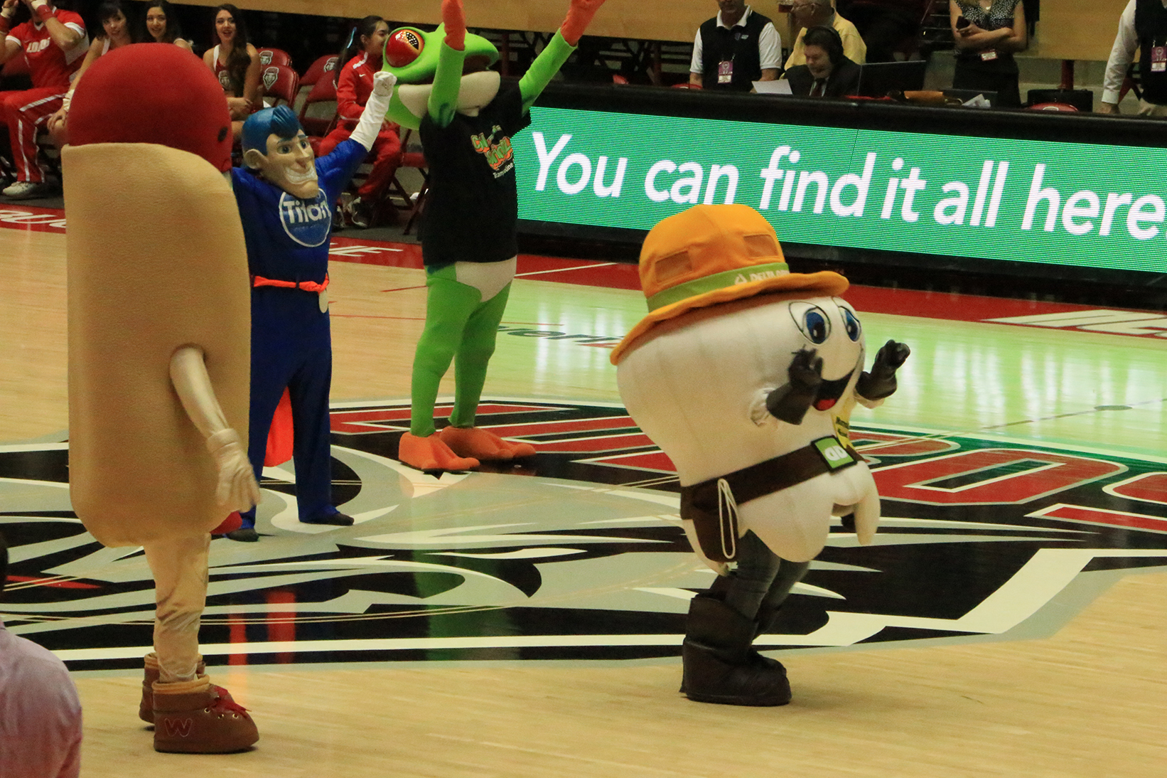 Half-time Gags | Sponsors sent out their mascots to play against each other in a slapstick basketball match.