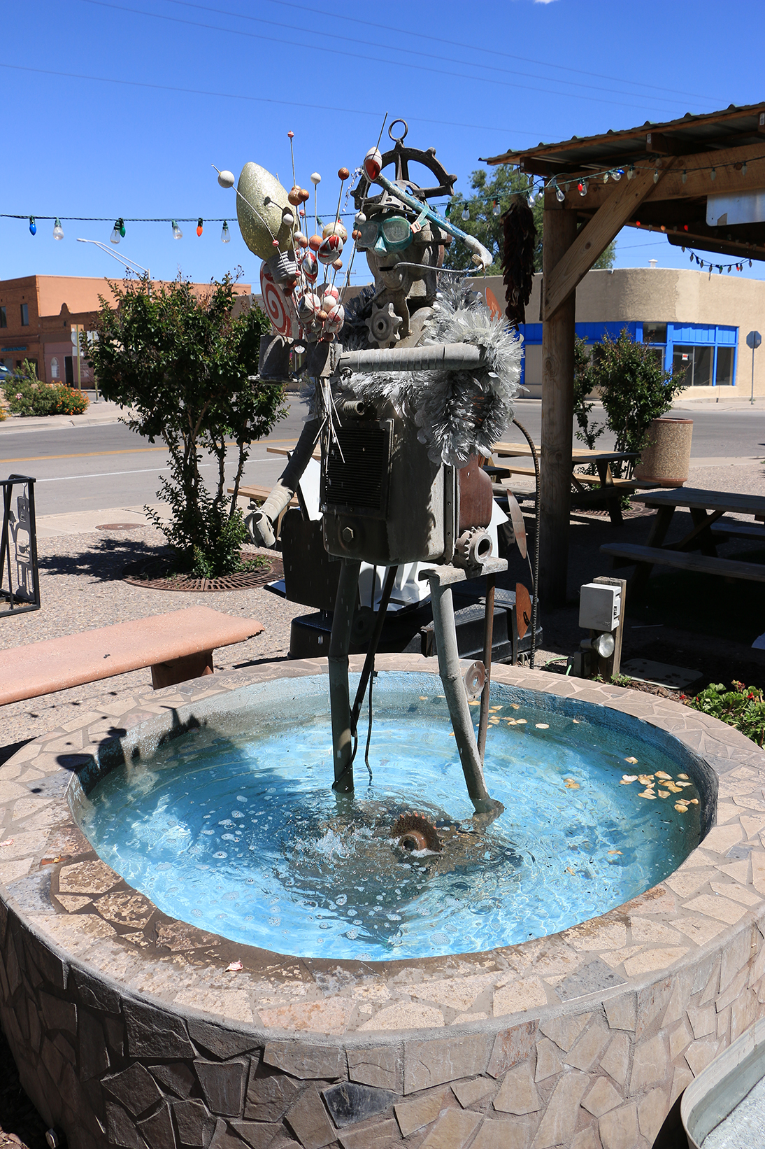 In Hatch, which claims to be the chile capital of the world, you can find chiles (that’s peppers) in just about everything on a restaurant menu. When we stopped at Sparky’s Burgers Espresso BBQ and Shakes, it seemed like a perfect oasis for our road trip. It even had a water feature.