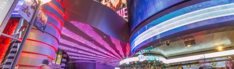 Planet Hollywood’s Street level exterior is the height of flashiness.
